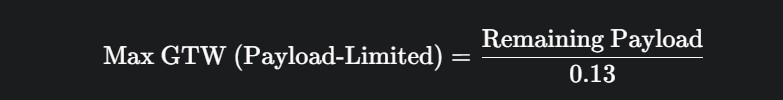 Remaining Payload=Payload Capacity (from sticker)−Total Actual Load